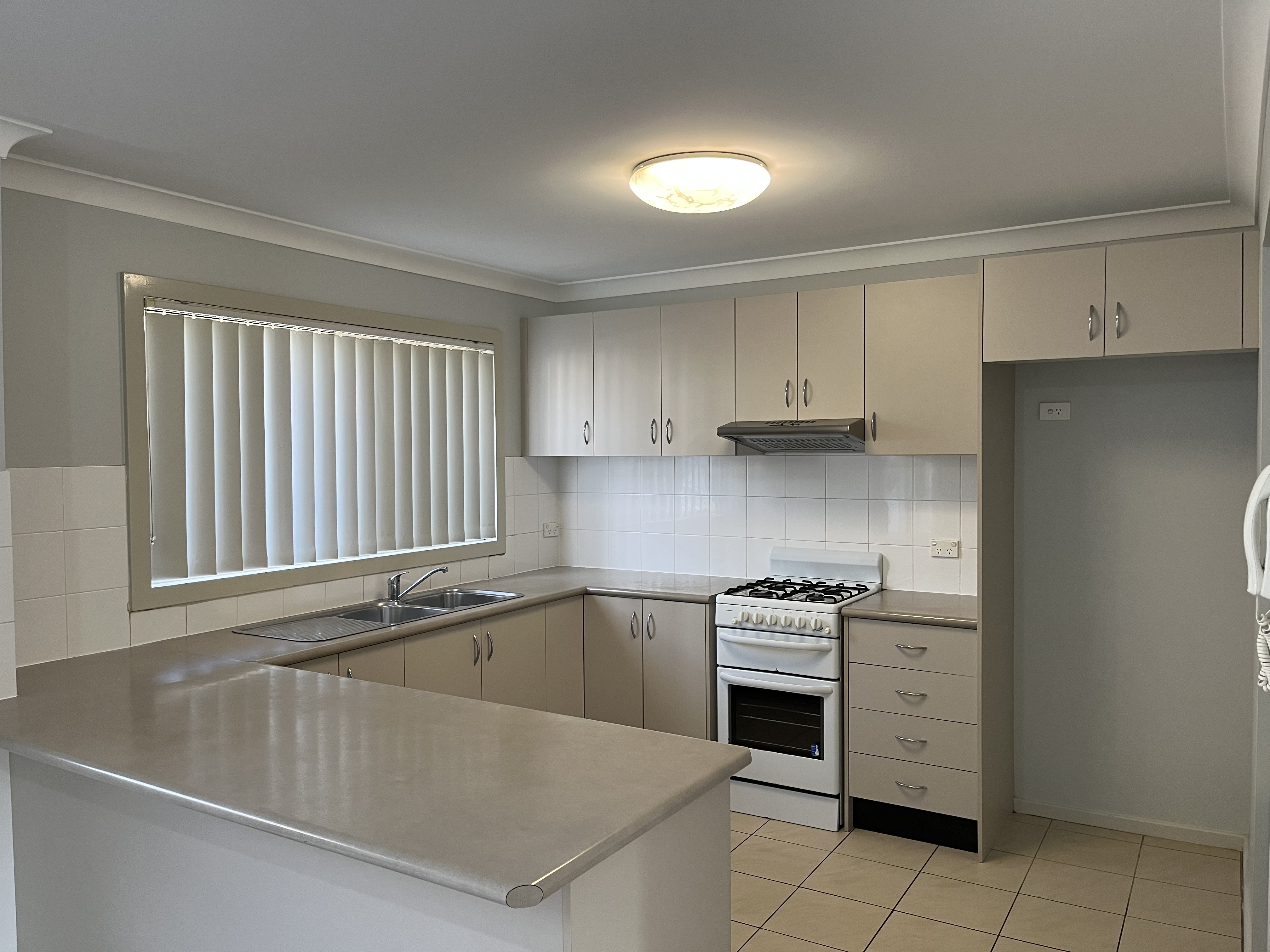 - Spacious kitchen with upright gas stove and oven