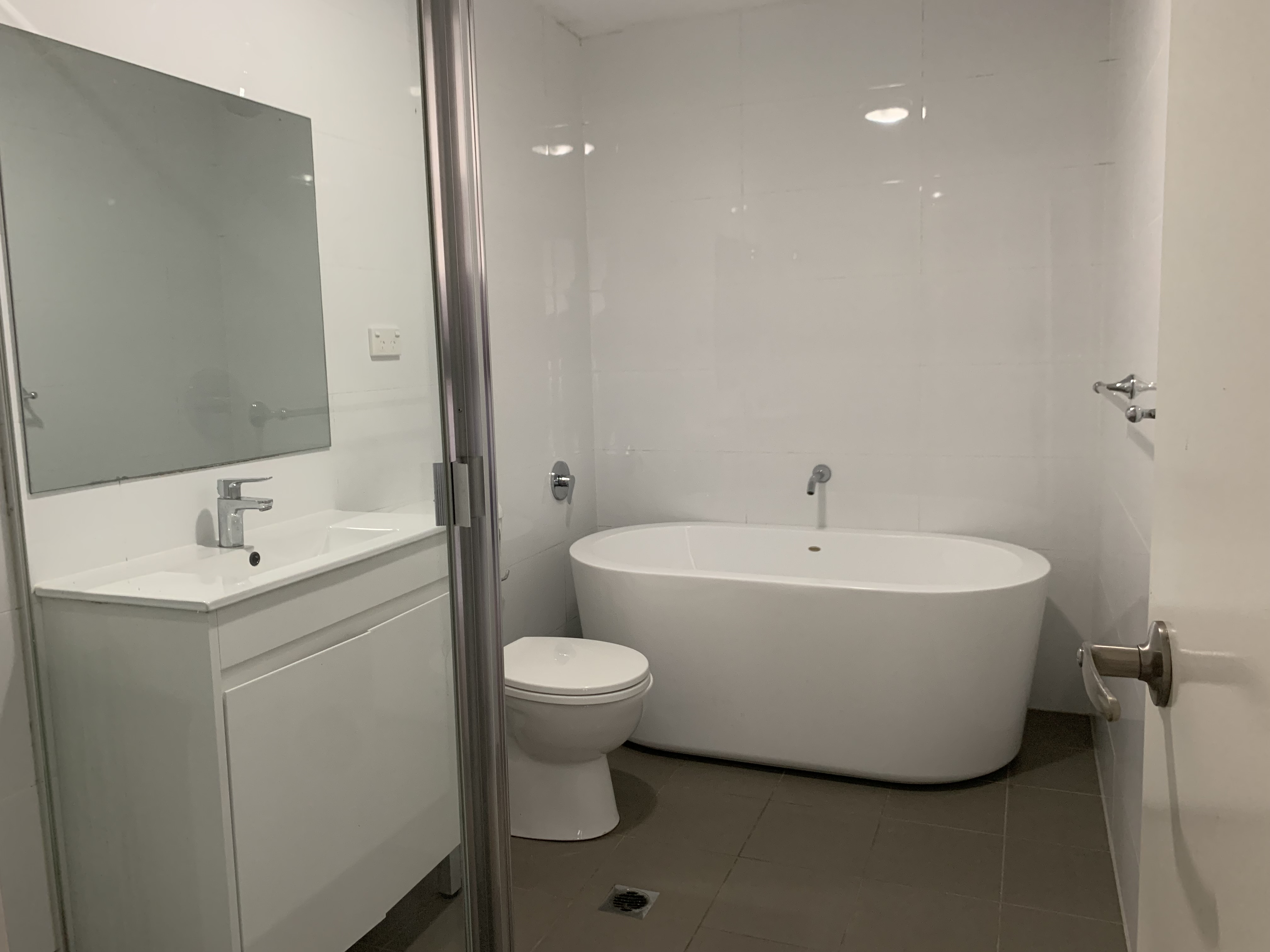 - Main bathroom with separate bath and shower